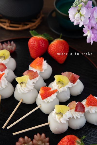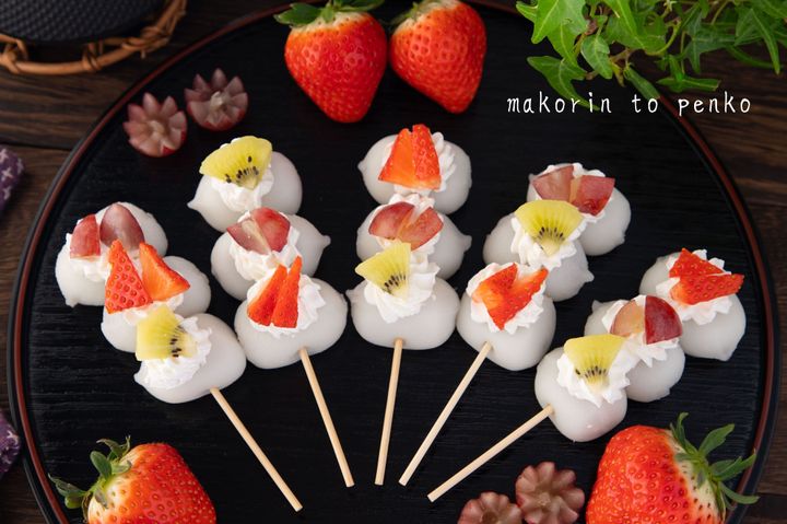 串に刺して飾るだけ!フルーツパフェの様な可愛い大福団子