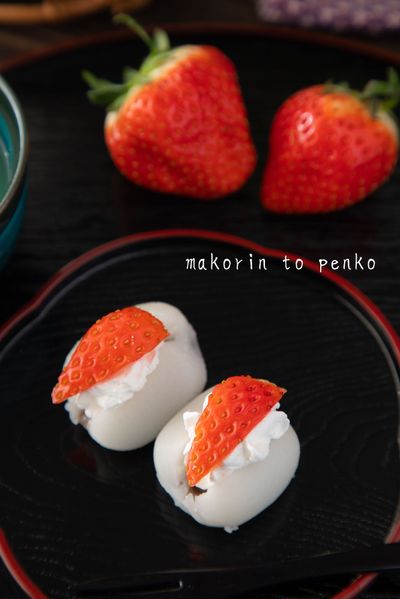 冷凍ぷち大福は、切って苺を乗せるだけで簡単に苺大福を作る事も出来ます。
