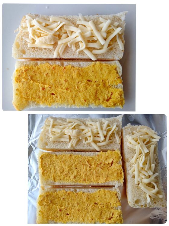 こちらのカレーパンクリーム、食パンにぬるのがオーソドックスだと思うのですが、少しアレンジして、サクサクカレーパンとトロっとチーズパンを合わせた「カレーチーズパン」にしてみました。