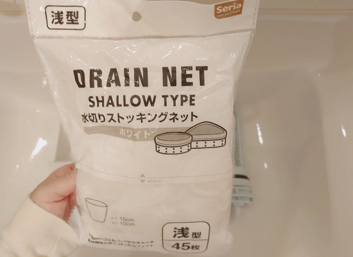 その憂鬱な作業がほぼ不要になったアイテムがこれ、三角コーナーや排水口にセットするセリアの【水切りストッキングネット】です。伸縮性があって排水フィルターにセットしやすく、編目の細かいストッキングタイプなので細かいゴミもしっかりキャッチしてくれます。外すとほとんどゴミがついていない状態なのでかなり時短になりました。ほこり、糸くず、繊維カス、髪の毛などの他に、小学生の息子がいるので砂や砂利もまざっています笑