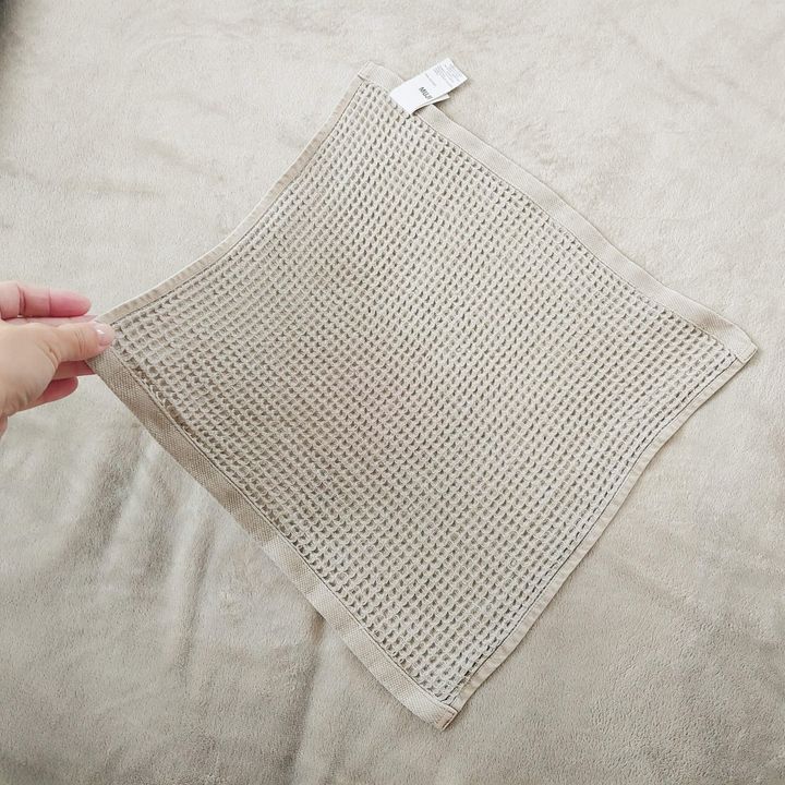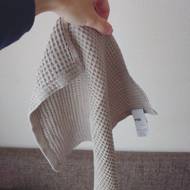 バスマットでなくてもいいかも?とふと思って試したタオル、わが家では採用でした。無印良品のワッフルのハンドタオルを1人1枚使っています。お風呂場のドアに体をふくタオルをかけているので中で軽くふいてから出ればこのサイズでも大丈夫でした。