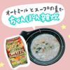 オートミールがふやけてやわらかくなり、ぐっと食べやすくなりますよ。