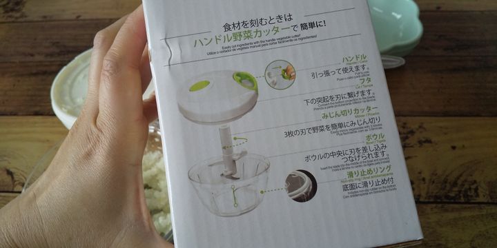 小ぶりではありますが、電池もモーターも無しで野菜のみじん切りができる器具が300円とは驚きです。