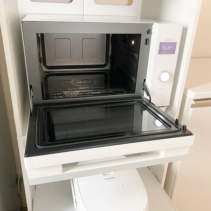 こちらが発売される前までは別のシンプルなデザインの電子レンジを検討していたのですが、オーブンレンジ ビストロ NE-UBS5A-Wのシンプルを極めたようなデザインに惹かれ、容量もちょうどよく機能も後から追加でき、アタッチメントを追加すればさらにレシピの幅が広がる。といった良いとこ取りなオーブンレンジに決めました。