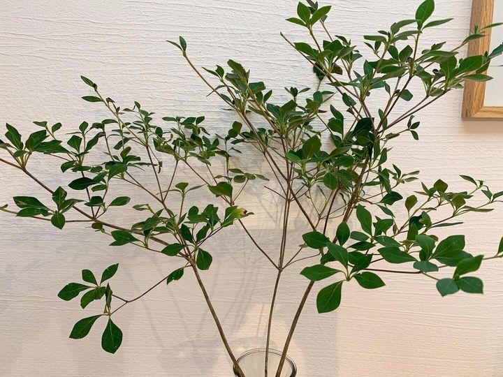 SNSで人気のドウダンツツジは、花が咲いた後の葉っぱだけになった切り枝の状態のものです。5月から夏にかけて生花店で販売されています。
