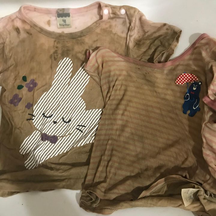 保育園でよく泥遊びをしているのですが、実際に持ち帰った汚れ物です。