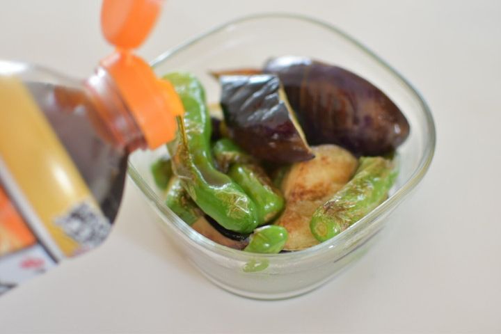 焼き目を付けた野菜にめんつゆをかけるだけ。シンプルだからこそおいしい料理です。