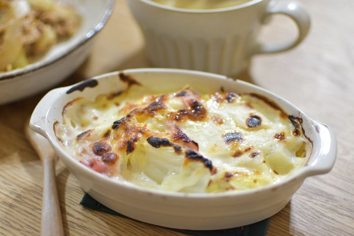 あっさりとした味わいの白菜は、洋食との相性もばっちり。チーズをたっぷりとかけてこんがり焼くだけ!ホワイトソースと合わせてグラタンにしてもおいしくいただけますよ。