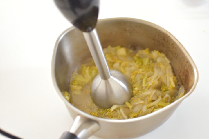 ③ブレンダーやミキサーで撹拌し、なめからになったら牛乳(豆乳)をお好みの量を加えて塩で味を調えたらできあがり!