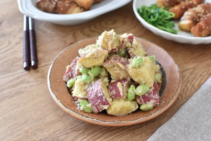 さつまいも、枝豆、すりごま、マヨネーズ、塩