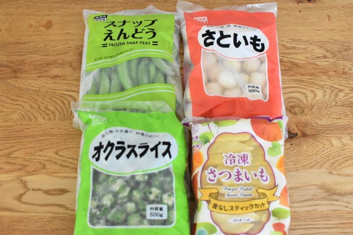 なるべく栄養価の高い旬の野菜を使いたいですが、業務スーパーの冷凍野菜が時短料理の味方。