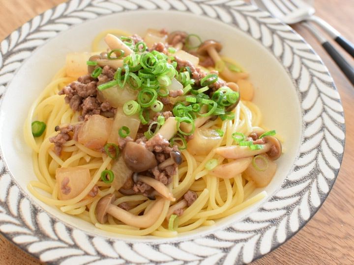 大根で和風そぼろパスタ