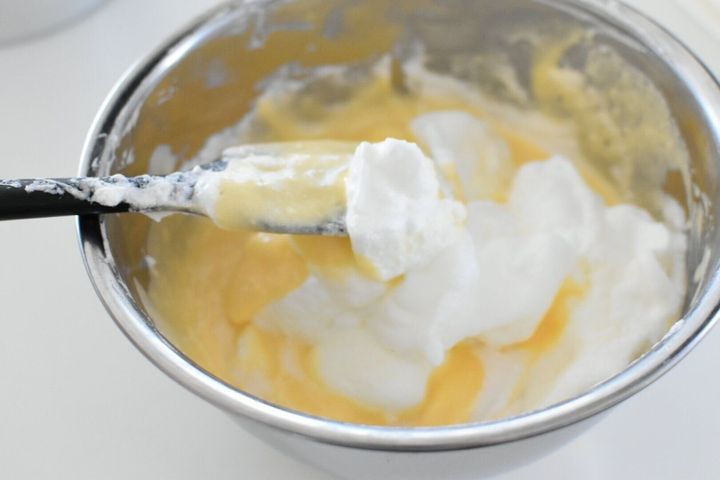今回のチーズシフォンはチーズケーキとシフォンケーキの中間なので、もし卵白が上手く泡立てられなくてもOKです。