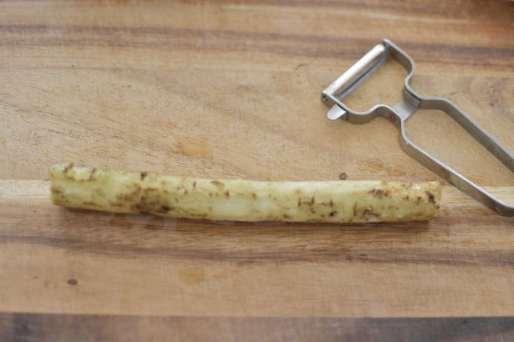 ごぼうは包丁の背などを使って皮を除いてささがきにします。