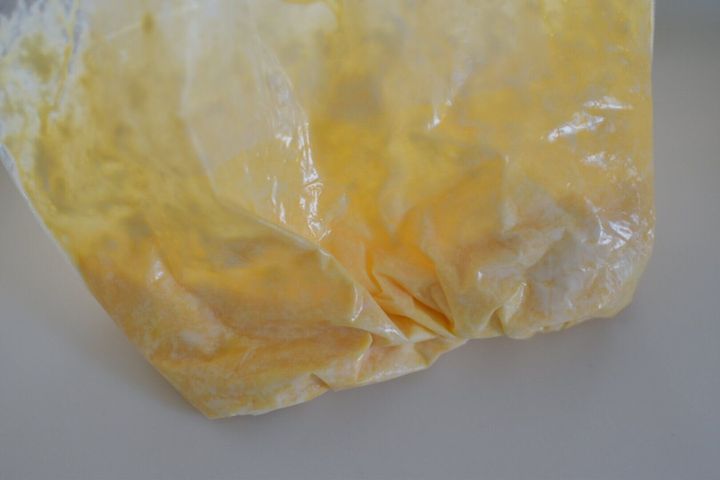 今回はジップロックを使用していますが、冷蔵用、冷凍用どちらのフリーザーバッグでも良いですよ。クリームチーズを入れて柔らかくなるまで揉んでいきます。