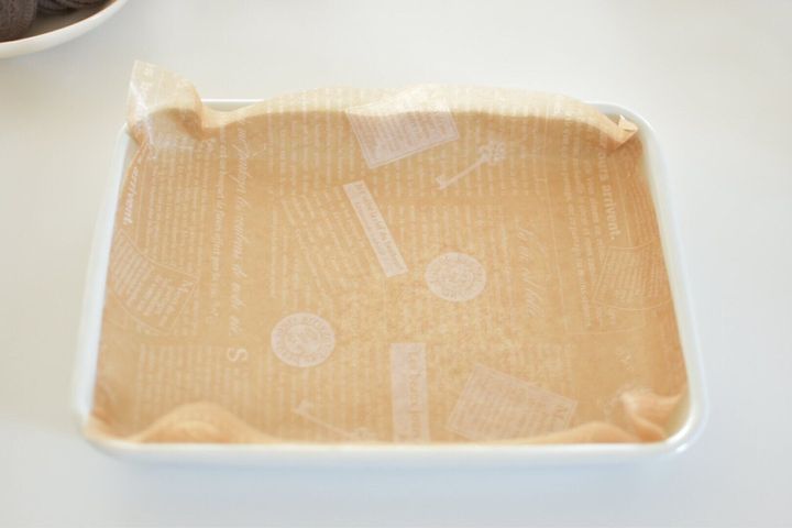 オーブンは180度に予熱し、ホーロー容器か耐熱の保存容器にオーブンシートを敷いてください。