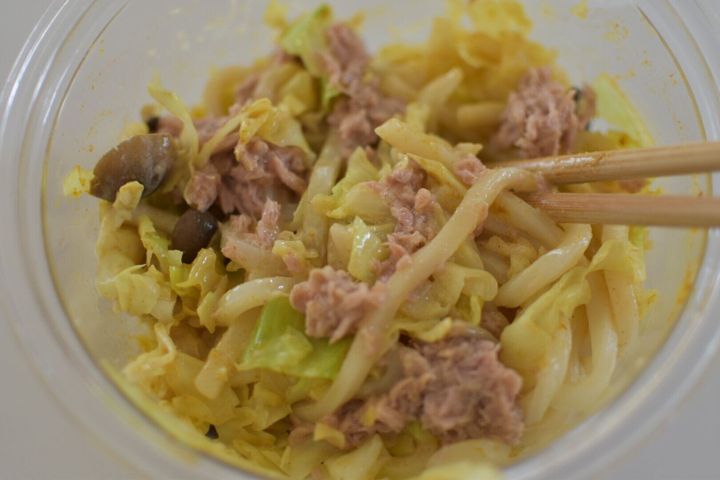 ツナとキャベツの混ぜうどん