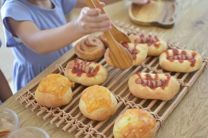 買ってきたパンやおにぎりをお店のように並べるだけ。一緒に作ってもいいですよね。