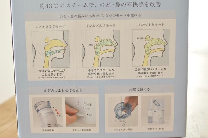吸入器には、蒸気を吸い込むことによって鼻と喉を加湿・洗浄してくれる効果があります。