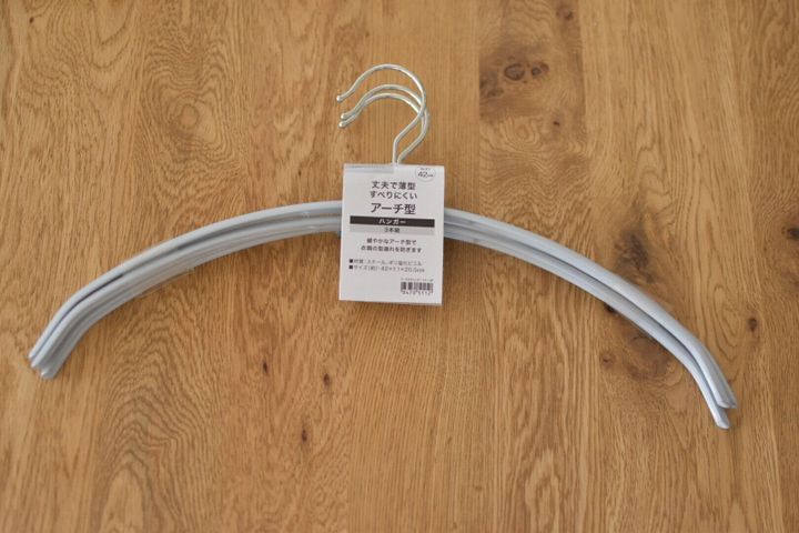 こちらのニトリのハンガー、ニットでも跡かつきにくいのて愛用しています。