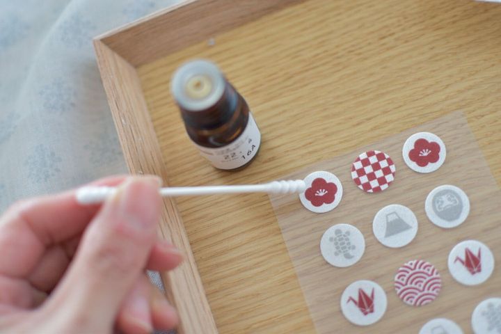 麺棒にアロマオイルを染み込ませて、シールの中央につけるだけ。