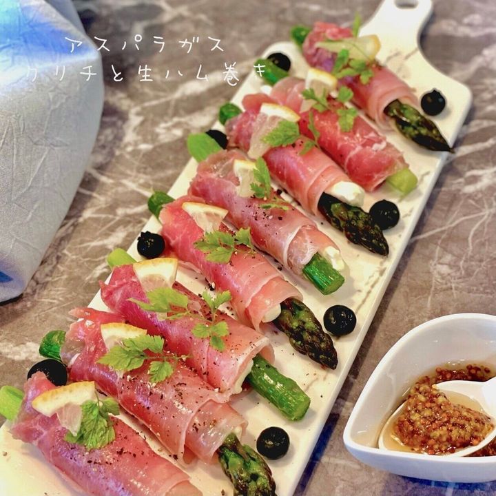 ■オシャレで簡単!クリチと生ハム巻きのハニーマスタードソース添え