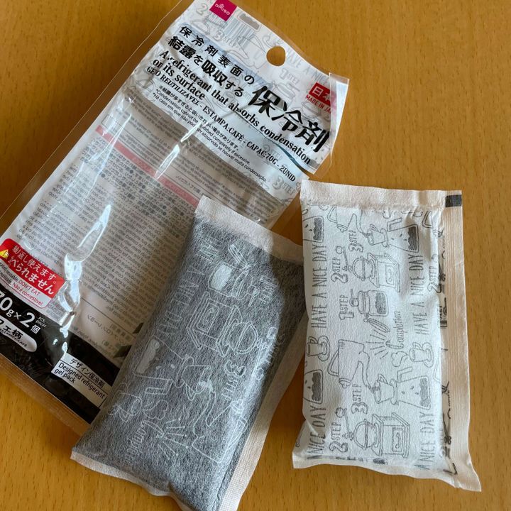 購入した保冷剤は結露を吸収してくれるタイプ。デザインも可愛らしく、2個入りなので持ち運びや、お昼までの時間が長い場合2個使いができるのも助かります。
