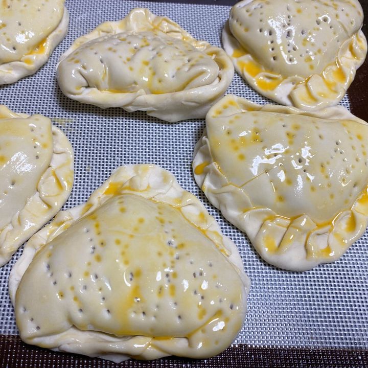 パイシートは伸ばせれば大丈夫ですが冷凍庫から出したばかりのカチコチだと伸ばせないので常温に置いて1~2時間放置しておきましょう。ハンバーグと同時進行なので、夕方くらいに出しておくか(または前日に冷蔵庫へ移動させておくだけでも大丈夫ですよ)