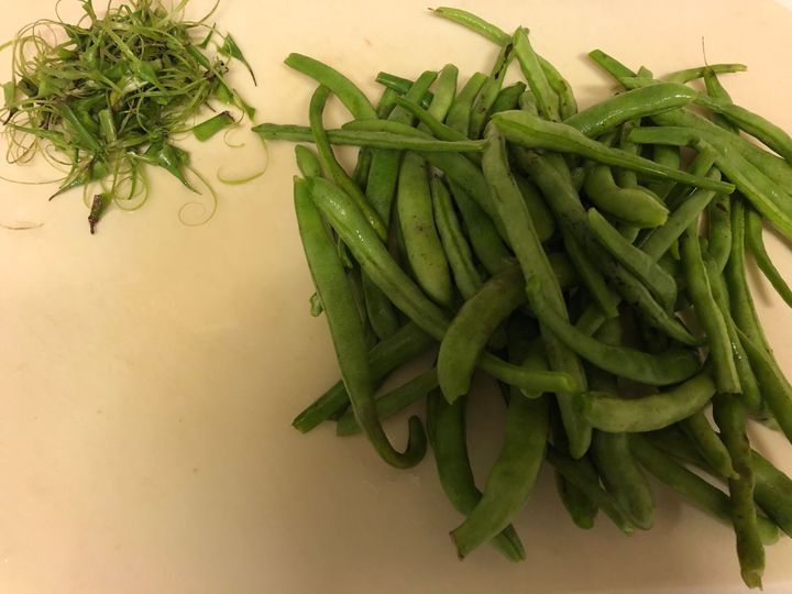 いんげんをよく洗い、水気を切る。筋があるものは、筋をとる。