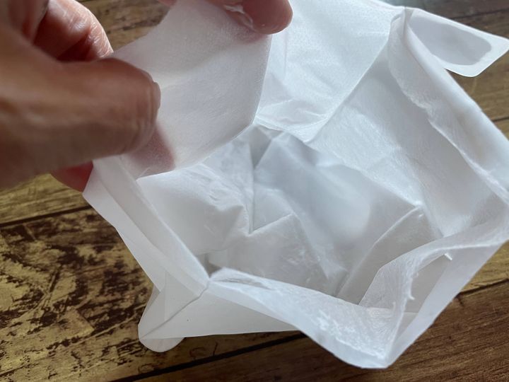 繋がっているフットパックを真ん中から切り離すと、中には美容液に浸った不織布が入っています。