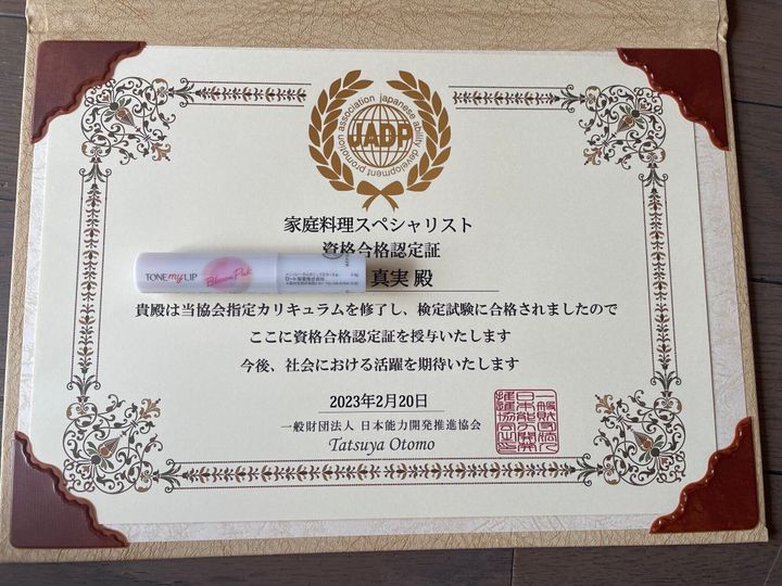 というわけで、私マミは「家庭料理スペシャリスト」になりました。私頑張った!