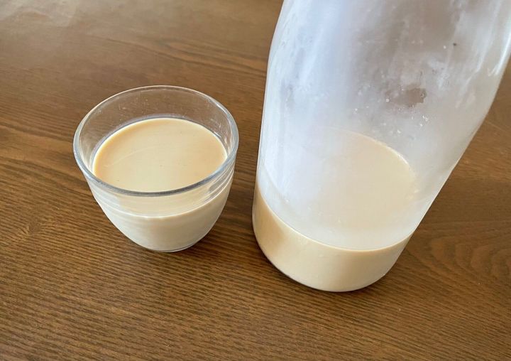 8時間経ち「ミルク出しコーヒー」ができあがりました!8時間も漬けておいたら、かなり濃い色になるのでは?と思いましたが、むしろ色は割と薄めです。