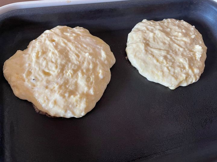 生地の表面がプツっとしてきたらひっくり返して裏面も焼きます。中まで火が通り、爪楊枝などを刺してドロっとした生地がついてこなければ焼き上がりです。