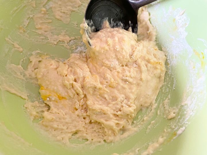 混ぜた生地は、時間を置かずにすぐ焼きます。