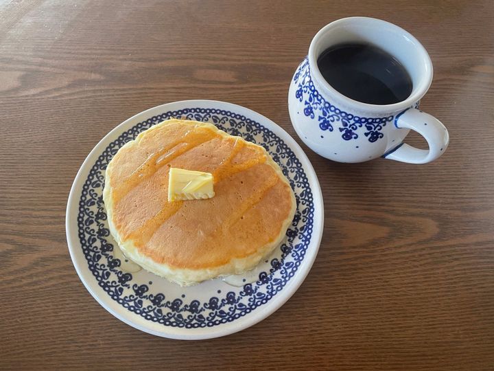 モチモチ食感がおいしいパンケーキが、普通の生地におもちを入れるだけでできちゃいますよ。