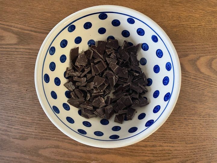 板チョコを細かく割り、レンジで使える耐熱のお皿に入れます。