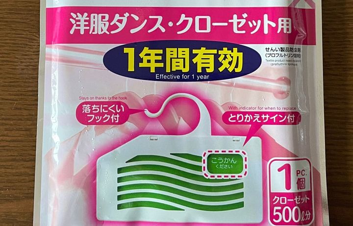 防虫剤の防虫効果は1年間!それなのに110円だなんて、思わず二度見してしまうほどの安さです。