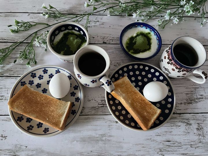 朝食を簡単にするために、以前から平日のメニューは毎日一緒にしていました。パン、ゆでたまご、コーヒー、小松菜とバナナのヨーグルトスムージーに固定化していたのです。