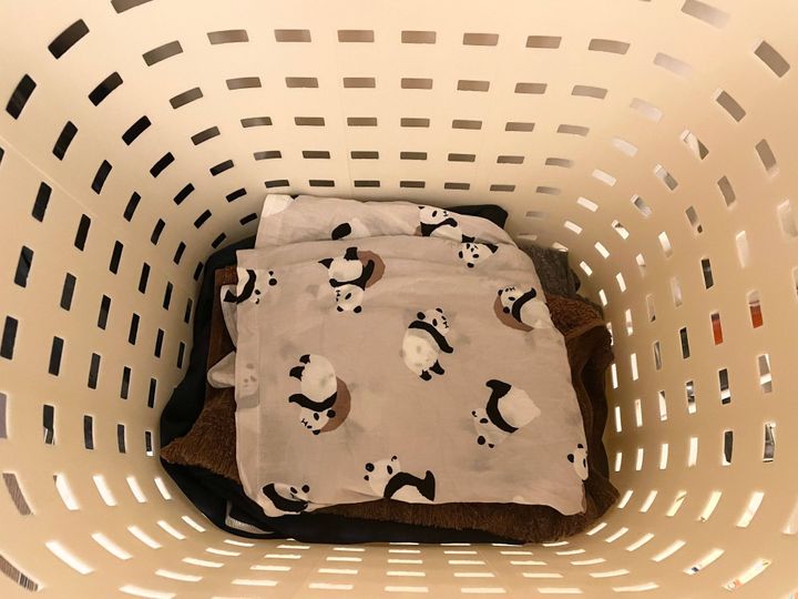 ピンチハンガーごとクローゼットに行ったら、ピンチから外しながらカゴへポイポイ入れていくだけ。