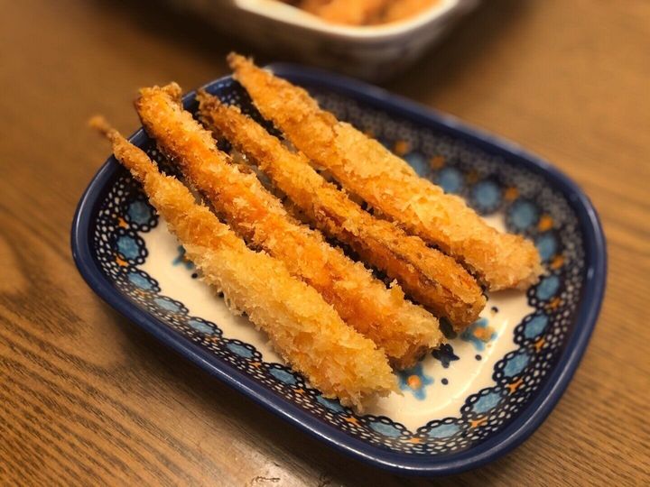 できあがりです!どうでしょう?見た目エビフライみたいじゃないですか?