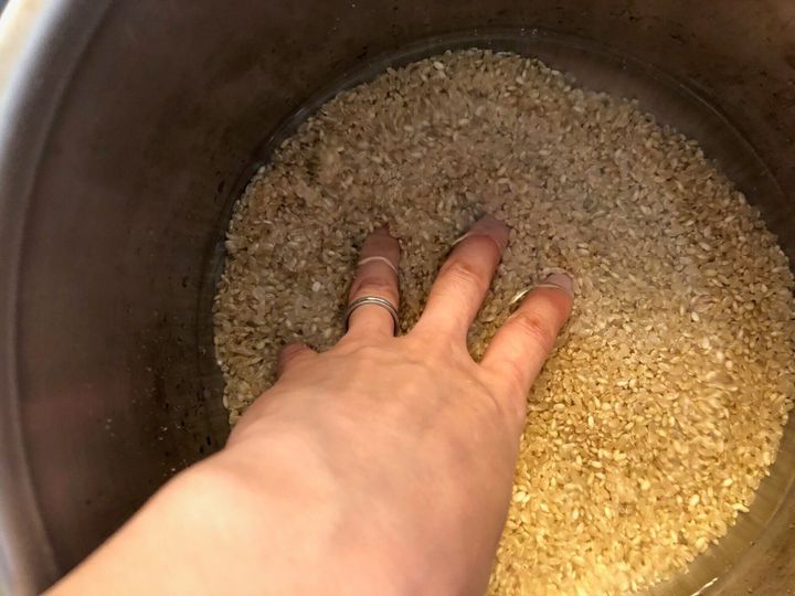 玄米は研ぐ必要はありませんが、ほこりや汚れを取り除くため軽く水で洗います。