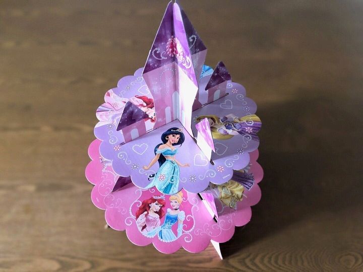 組み立てはとっても簡単。お城を交差させて立て、プリンセスが描いてあるお皿部分を差し込めば完成。高さは約38cm、お皿部分の直径は約28cmと、なかなかの大きさがあります。