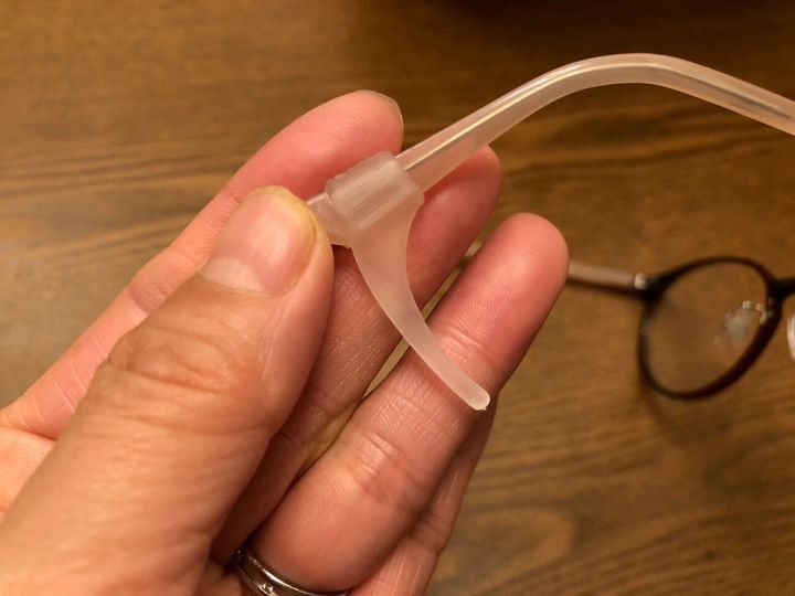 使い方は簡単です。眼鏡のフレームをよく拭き汚れを落としてからメガネストッパーを差し込み、耳に合わせてストッパーの位置を調節するだけ。後は普通に眼鏡をかければOK。シリコンなので柔らかく、耳にあたっても痛くありません。また、しっかり止まってくれるので、知らない内にストッパーが外れてしまうということもありませんよ。