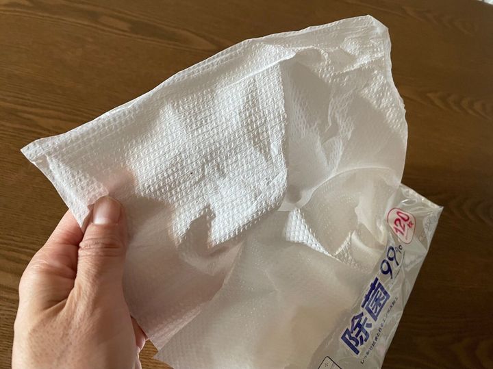 テーブルや洗面台などを除菌する際、濡れた部分を拭きとって、さらにそこから除菌をするというやり方をすることが多いですよね?このペーパータオルなら、濡れたところをそのまま拭けば、それだけでふき取りと除菌が完了!これはとても便利です。2度拭いていたところが、1度で済みますね。