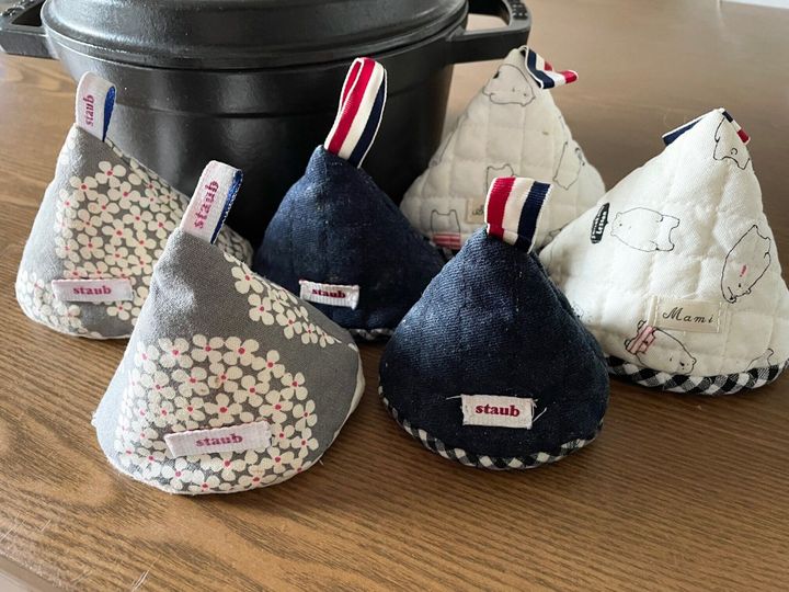 小人の帽子のような見た目の「三角鍋つかみ」をご存じですか?名前の通り三角形の可愛い鍋つかみです。ストウブやルクルーゼなど、取っ手が熱くなる鍋にも使いやすいと、SNSでも人気です。今日はその使いやすさをお伝えしますね。