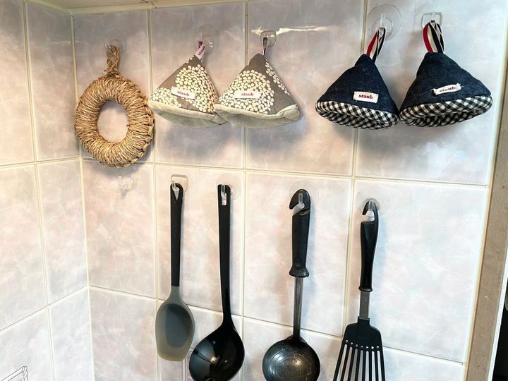 最近ではダイソーなど100円ショップでも見かけるようになった三角鍋つかみ。鍋の色やデザインに合わせてコレクションをしている人もいるほどです。吊るしておけば、かわいいキッチンのアクセントにもなりますよ。見かけたら手に取ってみてくださいね。