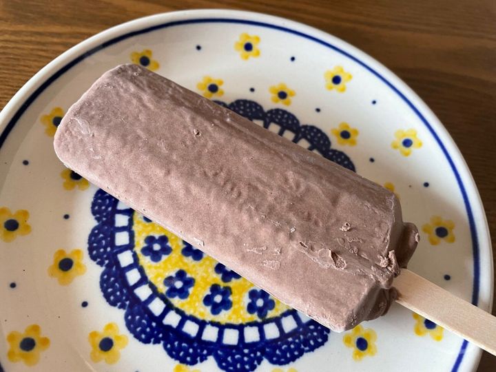 パッケージから出してみると、普通のチョコアイスの見た目。特に変わった様子もありません。一口かじってみると、思ったよりも柔らかい!ジャリジャリ感などはなく、なめらかな食感です。