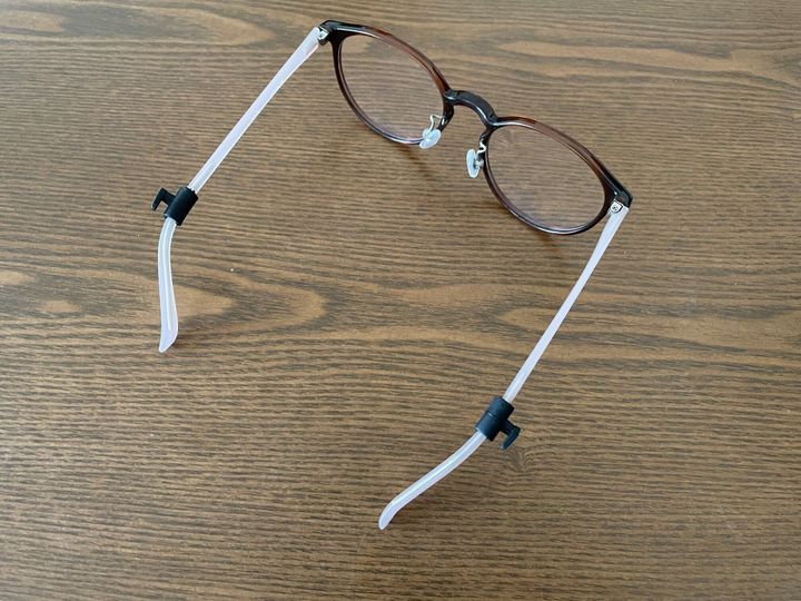 メガネのフレームにマスク留めクリップを通すだけで準備は完了。後はL字部分にマスクのゴムを引っかければOKです。