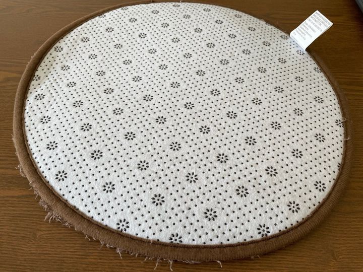 ご紹介するのは、ダイソーの「チェアパッド」です。サイズは直径35cmで、毛足の長いマイクロファイバーの生地は、ふわふわで肌触りもやわらか。