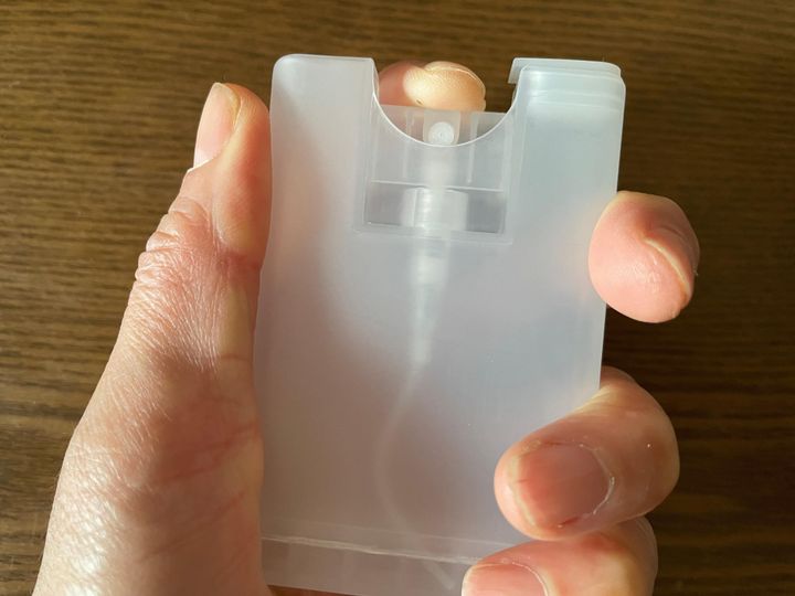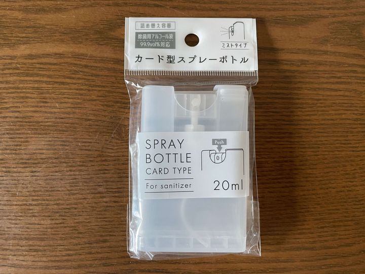 これなら、小さなバッグでも消毒スプレーが持ち歩けますよ。